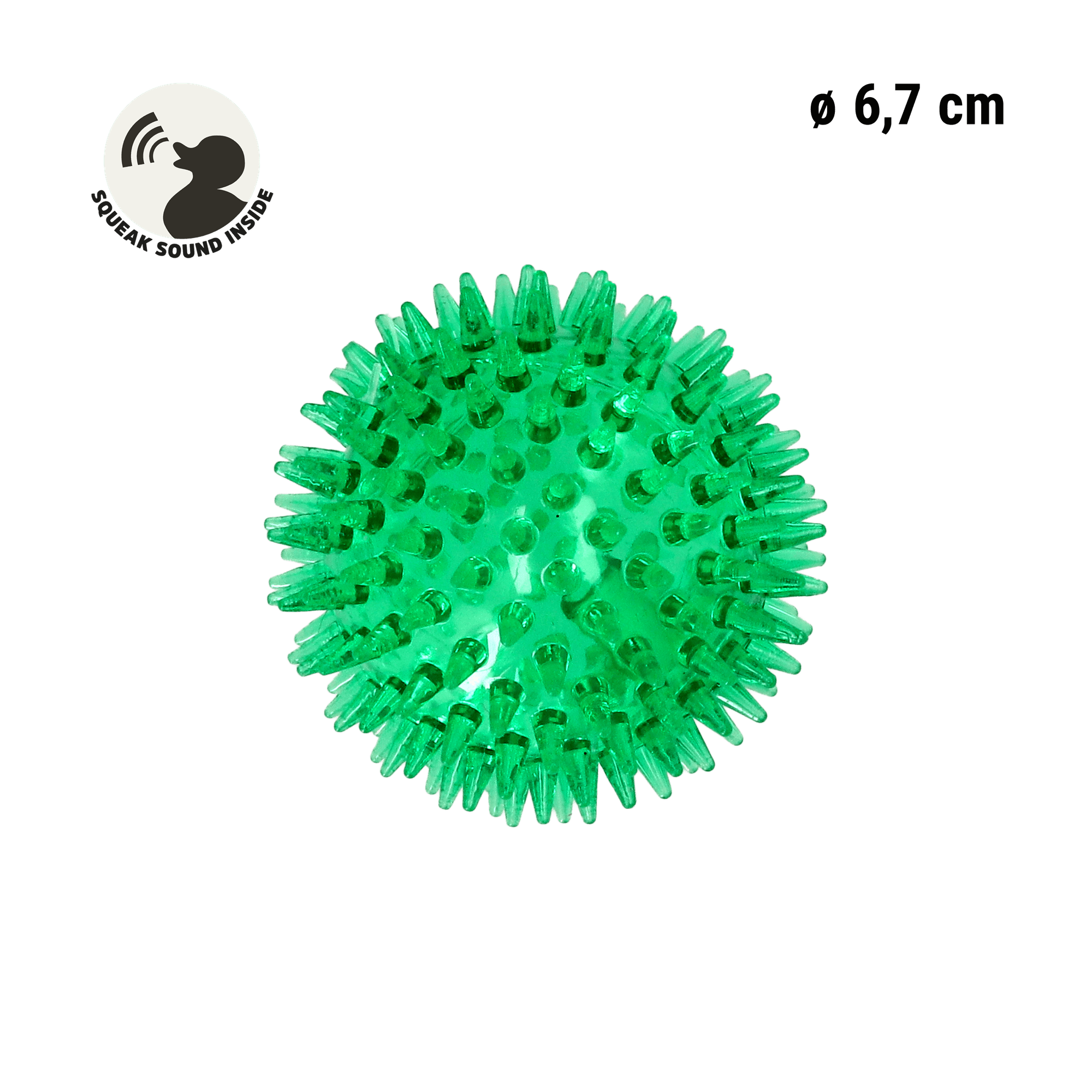 En mindre version af silikonebolden med pigger. Passer til små og mellemstore hunde. Piggene rengør tænder og tandkød, mens hunden leger og aktiveres af pipelyden.