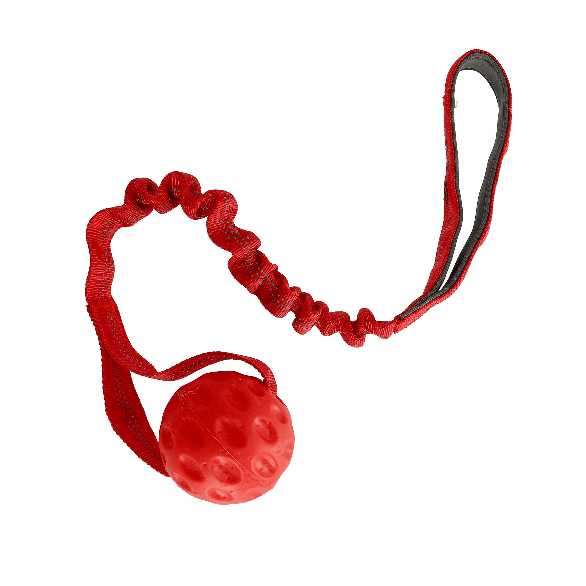 Puppy Bungee hard ball er et robust og holdbart hvalpelegetøj til stærkere hvalpe, der elsker at bide, tygge og trække. Bolden har en struktureret overflade, som gør den nem for hvalpen at gribe, og sammen med den elastiske del og det polstrede håndtag er den let at kaste og bruge i trækkeleg. Perfekt til hvalpe, der elsker fart, jagtlege, tygning og trækkeleg!