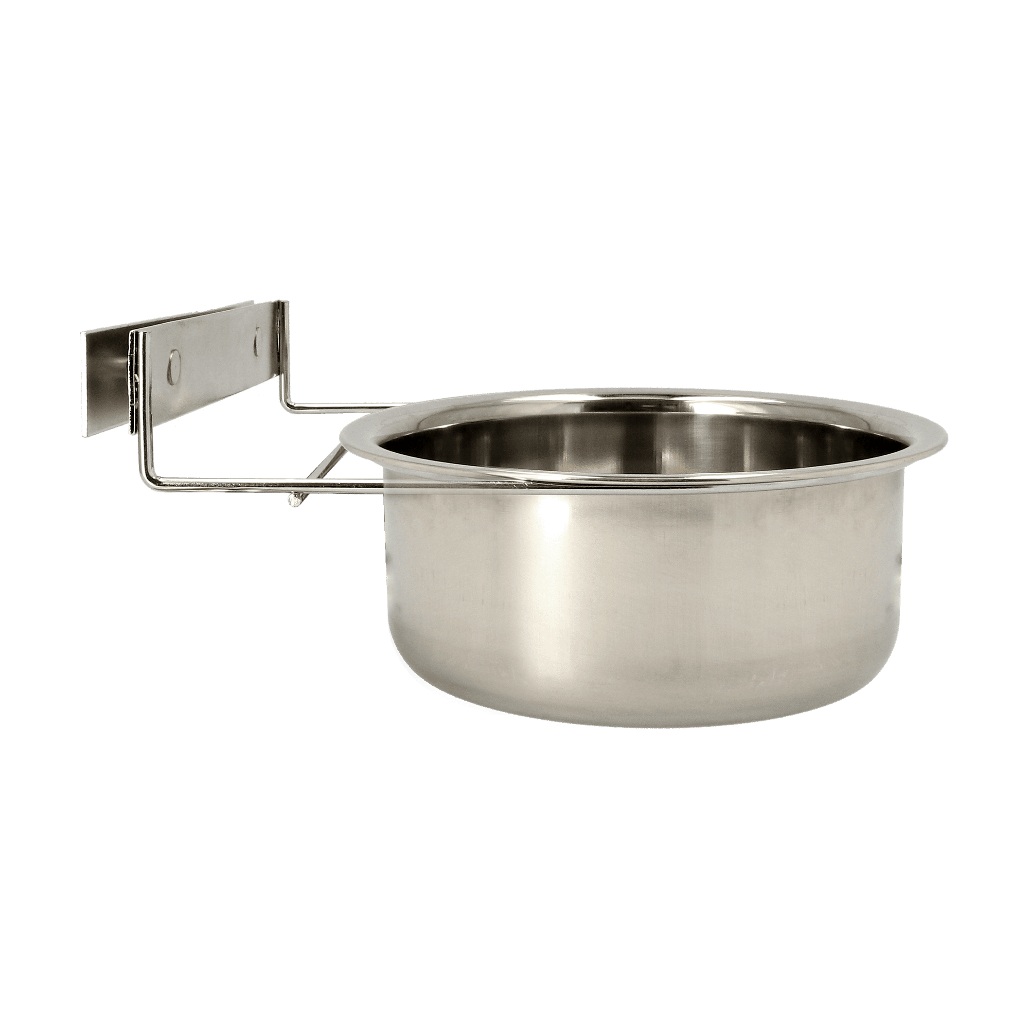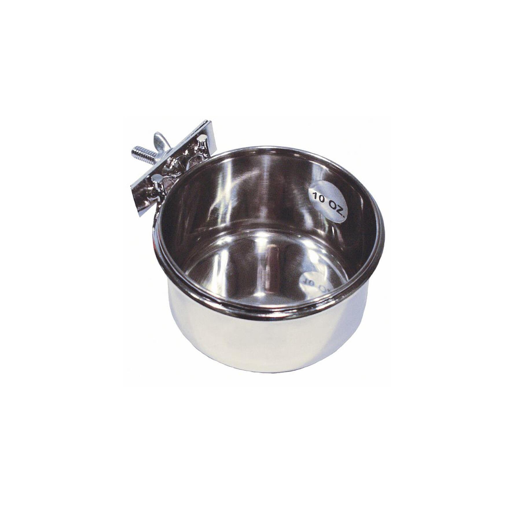 Madskål i rustfrit stål med skruebeslag, der er perfekte til bure med både lodrette og vandrette gitre. Til hundebure, men også til fugle og smådyr. Let at rengøre. Skålene kan vaskes i opvaskemaskinen.