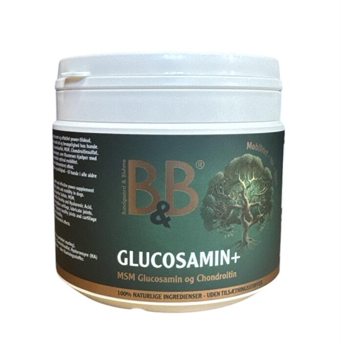 B&B Glucosamin+ er et nøje sammensat fodertilskud til hunde, udviklet med fokus på at støtte sunde led, bevare bruskens styrke og fremme smidighed – særligt hos ældre hunde eller hunde med nedsat mobilitet. Produktet er baseret på naturlige ingredienser og kan bruges både forebyggende og understøttende.