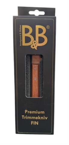 B&B Premium Trimmekniv - fin er som skabt til finish trim og præcisionsarbejde. Her får du en trimmekniv, som er udviklet og specialdesignet af professionelle hundefrisører. En trimmekniv som ligger utroligt godt i hånden, og som ikke skærer pelsen. Med en vægt på blot ca. 20 gram, er den særdeles behagelig at bruge, selv over længere tid.