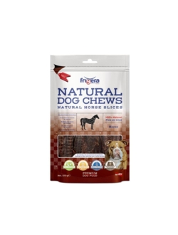 Natural Dog Chews Horse Slices. Disse hestekødsskiver er lækre snacks lavet af det allerbedste kød. De er delikat tørret med ren luft for at skabe en mør, men let sprød snack. Perfekt til en berigende oplevelse af længere varighed. Derudover bliver en godbid ikke mere naturlig. Disse skiver har et højt indhold af protein, jern, zink, magnesium og vitamin B12, hvilket bidrager til sunde muskler og giver hunden essentielle komponenter. Da de er skåret i praktiske skiver og nemme at portionere, er disse godbidder velegnede til hunde i alle størrelser. Selv hvalpe kan nyde denne absolutte delikatesse.