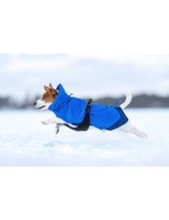 A warm softshell coat with weatherproof fabric to protect the dog from cold and wind. An adjustable high collar to protect the neck and ears from the wind and blizzard conditions. The wide touch-fastening waistband ensures that the coat stays in place and is easy to adjust to correct size. The rear panel protects and warms the dog's thigh muscles. There is an opening on the collar for leash attachment. Elastic rear leg straps ensure that the coat stays in place in all conditions, also in activities of higher intensity. The coat has reflective piping and logo.