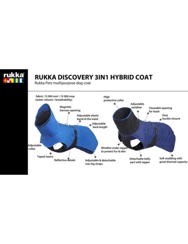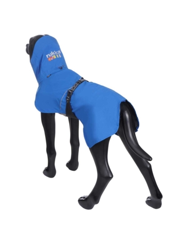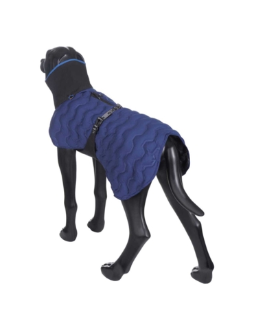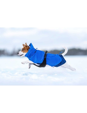 This innovative jacket can be used in different weather conditions and customized per your needs. First, the warm padded layer can be used as its own as a warming cover on a cool day. Secondly, the waterproof layer can be used also on its own as a lightweight raincoat, by just attaching the belly part piece to the waterproof layer. By combining these both layers your dog gets a coat that is waterproof and warm, just perfect for cold & rainy days. The waterproof layer is very lightweight and easy to carry in your pocket and just put on the dog if sudden rain appears. Both layers are easy to put on a harness since both layers have harness openings. The jacket includes adjustable and detachable rear leg straps. The rear leg straps should be attached to the top layer jacket, to keep the bottom layer in place. Thanks to the jacket's adjustability on the waist, neckline and back, you can easily make the jacket fit your dog perfectly. The uniquely shaped jacket covers the dog's big muscles but allows the dog to move freely and does not restrict its natural movement.
