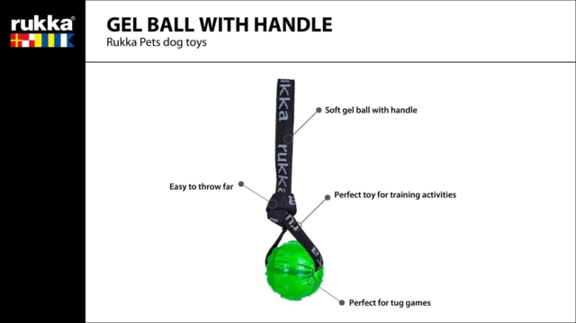- Features: Soft gel ball with handle. Bright colour stands out from the ground. Perfect for tug games.