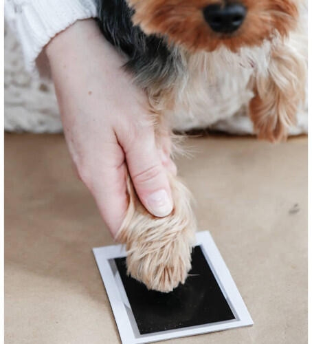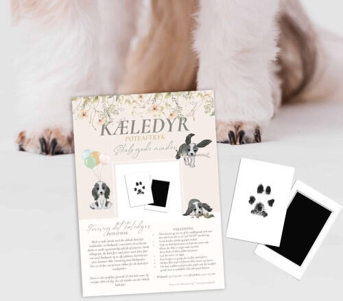 En blækpude i sort farve til at kunne skabe et unikt og personligt af dit kæledyrs pote. På den måde kan du altid huske tilbage på din bedste ven, når dit kæledyr ikke er til stede mere. Et dejligt minde, som man altid kan tage frem. Gør f.eks. noget kreativt med aftrykket. Dette sæt indeholder en sort blækpude og to aftrykskort. Kæledyrets trædepude kommer ikke til at høre direkte på blækpuden – den er derfor 100 procent sikker for dens trædepuder!